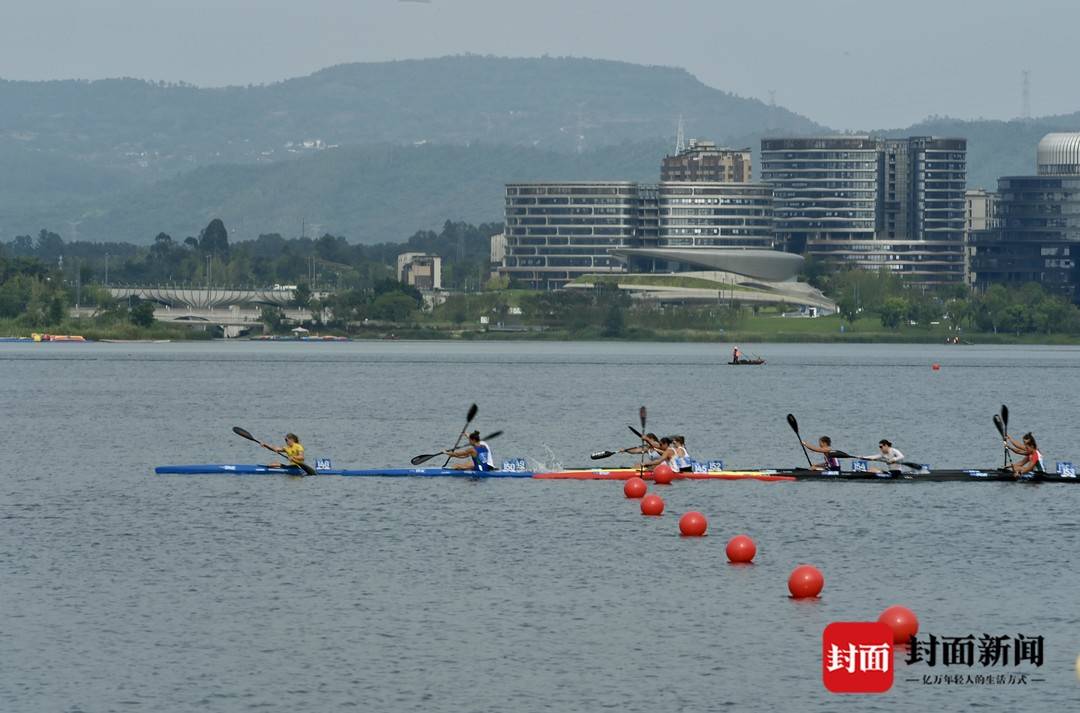 8月9日,2025年第12届世运会皮划艇马拉松项目短距离比赛在成都兴隆湖举行。该项目水上航道长1090米,陆上跑道长110米,每圈赛道长1200米,总赛程为3400米。比赛现场你不仅能看到运动员娴熟高超的划水技术、强大的力量和耐力。还能看到运动员“扛艇或拎艇跑”上110米,是项目的独特环节,使比赛具备趣味性和观赏性。