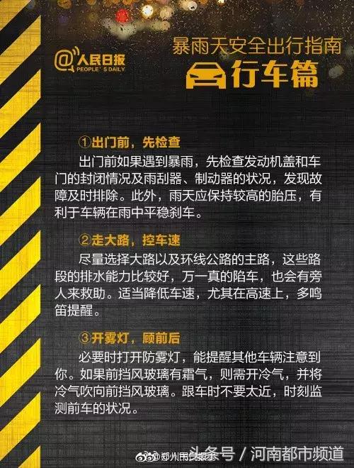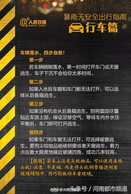 雨天安全事故易发,尤其是在暴雨天,提前做好防范是关键!雨天行车要注意什么?车辆不慎落水该如何自救?雷电天气出行该怎样应对?…暴雨天安全避险指南↓↓转存,关键时刻能救命!