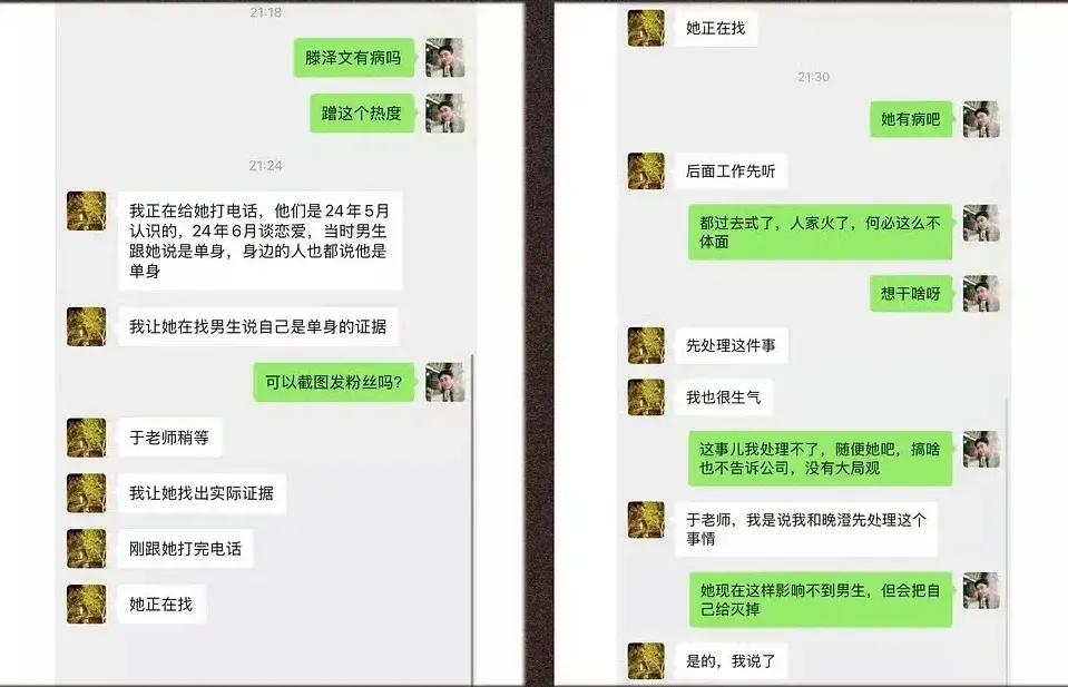 吃瓜群众跑去问老板于正咋回事,于妈反应那叫一个快:“我不知情啊!”转头就找手下问话,反手就把内部沟通记录甩了出来。这波操作,信息量爆炸:原来俩人去年五六月就好上了,男方当时可是信誓旦旦说“单身”,周围人也帮着打掩护。于正话里话外透着对滕泽文“冲动”的无奈,但也坐实了恋爱关系,田栩宁那“单身”人设,咔嚓一声裂了条大缝!