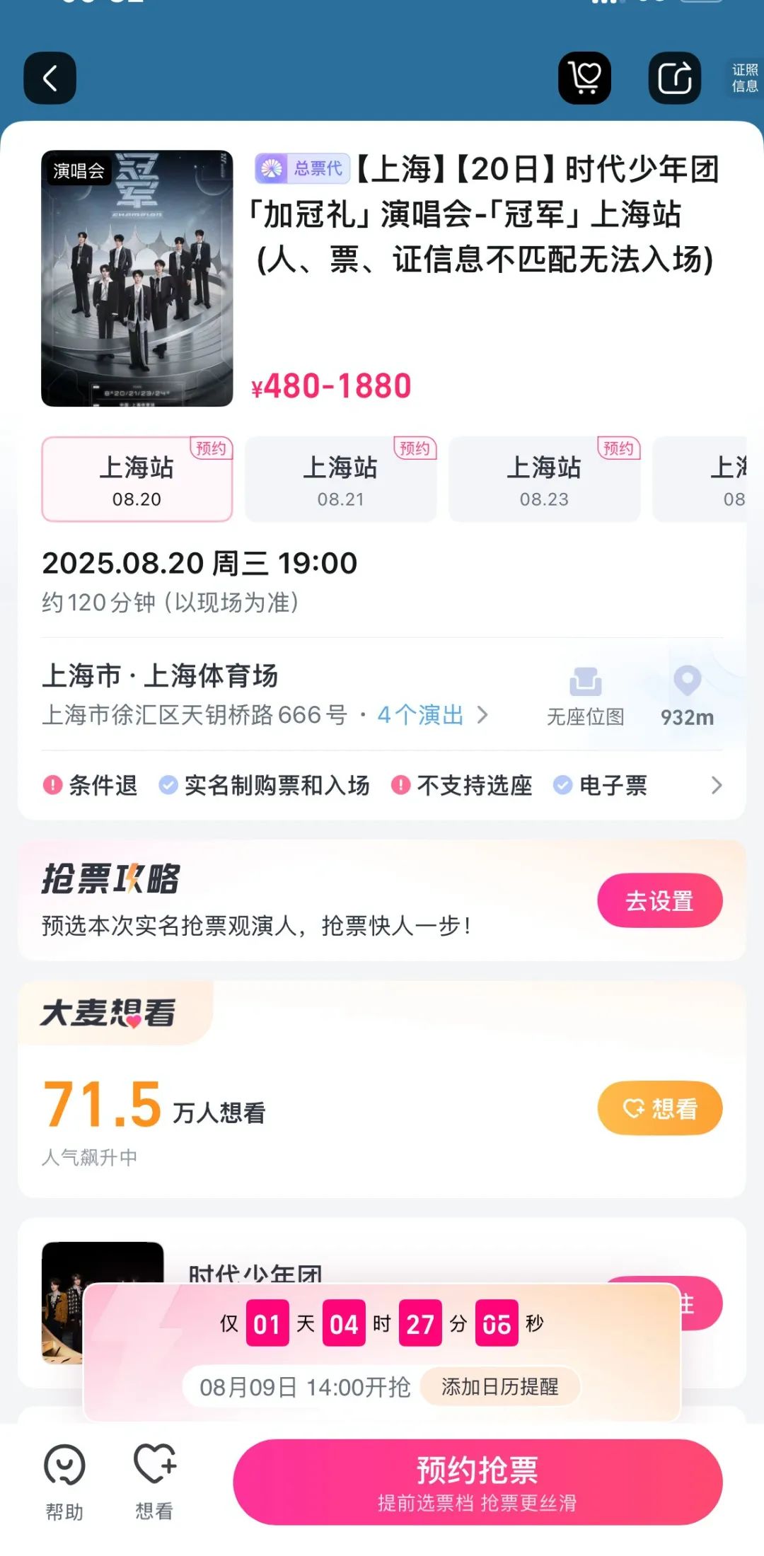 时团粉专属加时福利:出示本人“时代少年团「加冠礼」演唱会-「冠军」上海站”电子票根,以上活动可延长至10月31日。