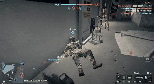 一方面,角色的战术动作极其的多,比如你不仅能倒着匍匐移动,还能边开枪边爬。