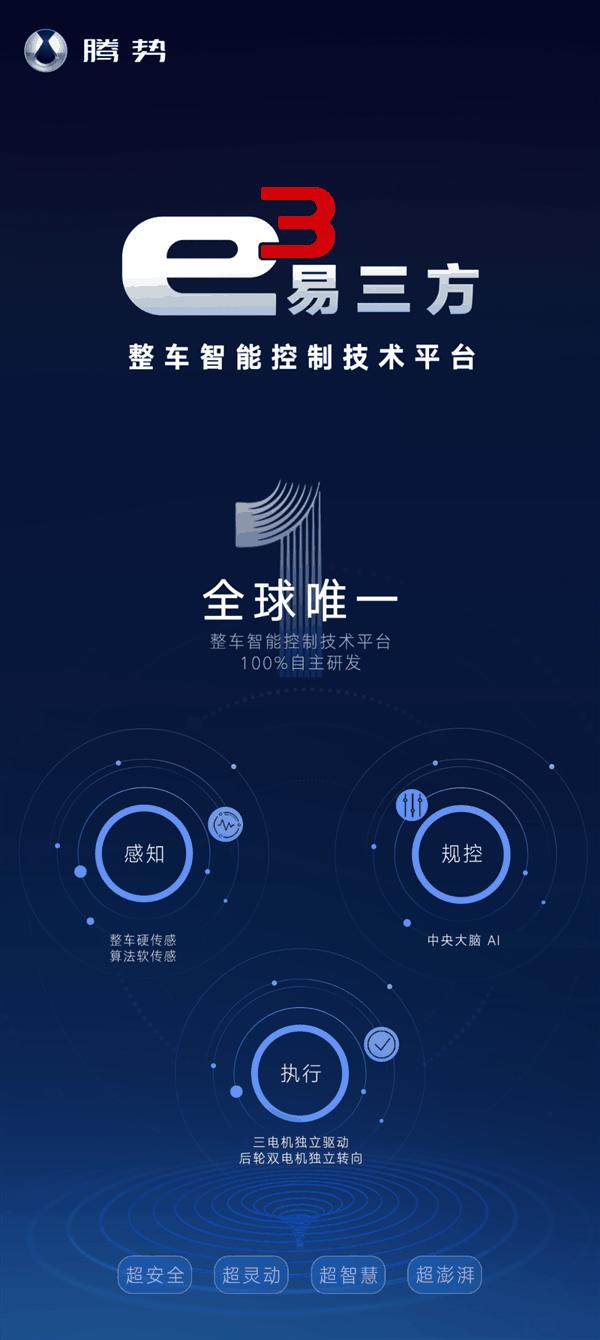 一是腾势独有的易三方整车智能控制技术平台,能够实现整车毫秒级的协同配合。在急转向的瞬间,车身传感器快速感知车身侧倾风险,迅速调整后轮转向角度及不同车轮的扭矩,形成对抗侧倾的反作用力,保持车身平衡。