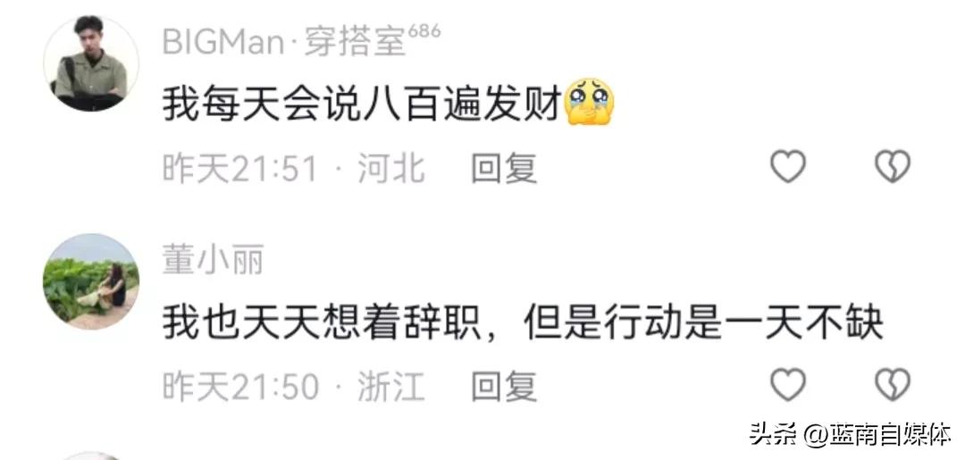 7、@董小丽:我也天天想着辞职,但是行动是一天不缺