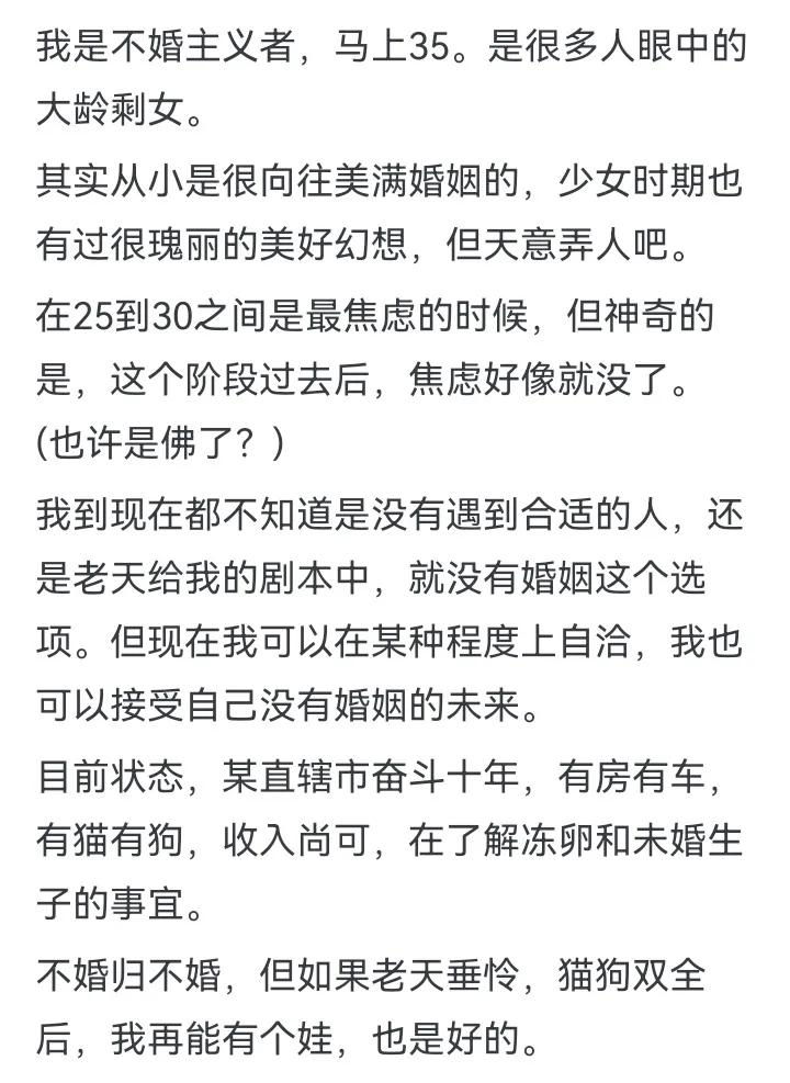这位姐妹,恭喜你!因为你的选择将让你的人生减少至少百分之八十的烦恼,包括但不限于夫妻关系问题、婆媳问题、育儿问题等,你仅剩的问题就是养老问题,但你现在将有足够的时间赚钱和存钱解决这个仅剩的烦恼!这么一想是不是很兴奋!