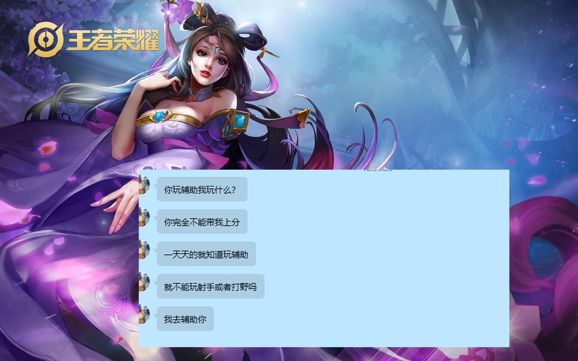 因为游戏输了就埋怨男生为什么玩辅助,就不能使用射手或者打野吗?其实女生的目标也很明确,就是需要男生带她上分,但是这位男生却是国服辅助,基本上都是最后选择英雄,而且主要以辅助为主,因为其它位置玩的比较少,所以并不很好的把握时机,有时候玩射手容易打不出伤害,导致团战脱节。