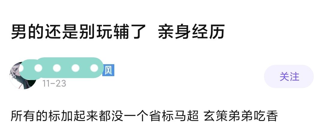 被女朋友嫌弃之后,该玩家也表示“男生还是不要玩辅助了,亲身经历,所有的辅助荣耀加起来都没有一个马超或者百里玄策吃香”!看来男生心里还是非常委屈的,毕竟一个游戏而已,难得上分比感情重要吗?