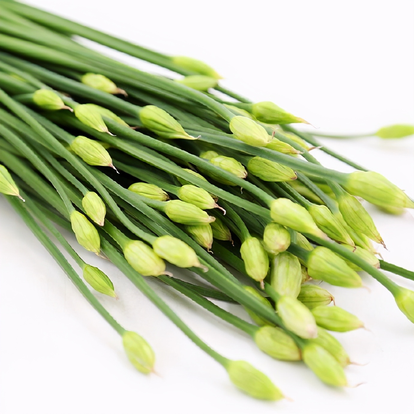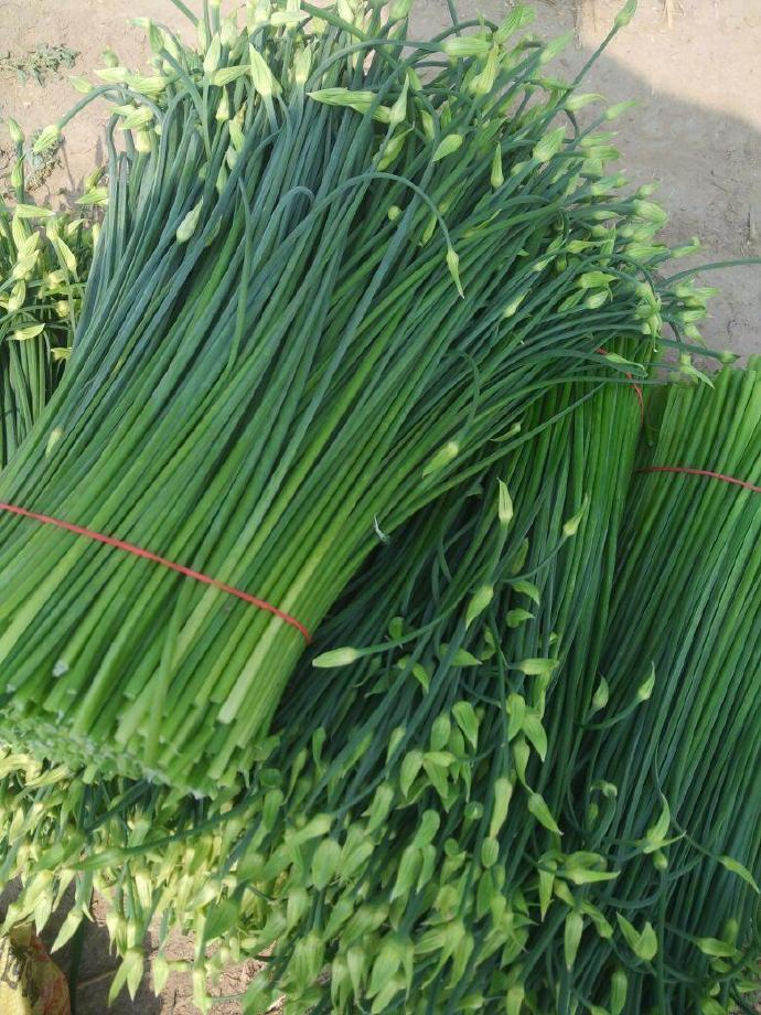蒜薹也是这么个原理,也会开花。但韭菜薹和蒜薹,真的很容易分清,你只要同时看过它们一次,就知道了。