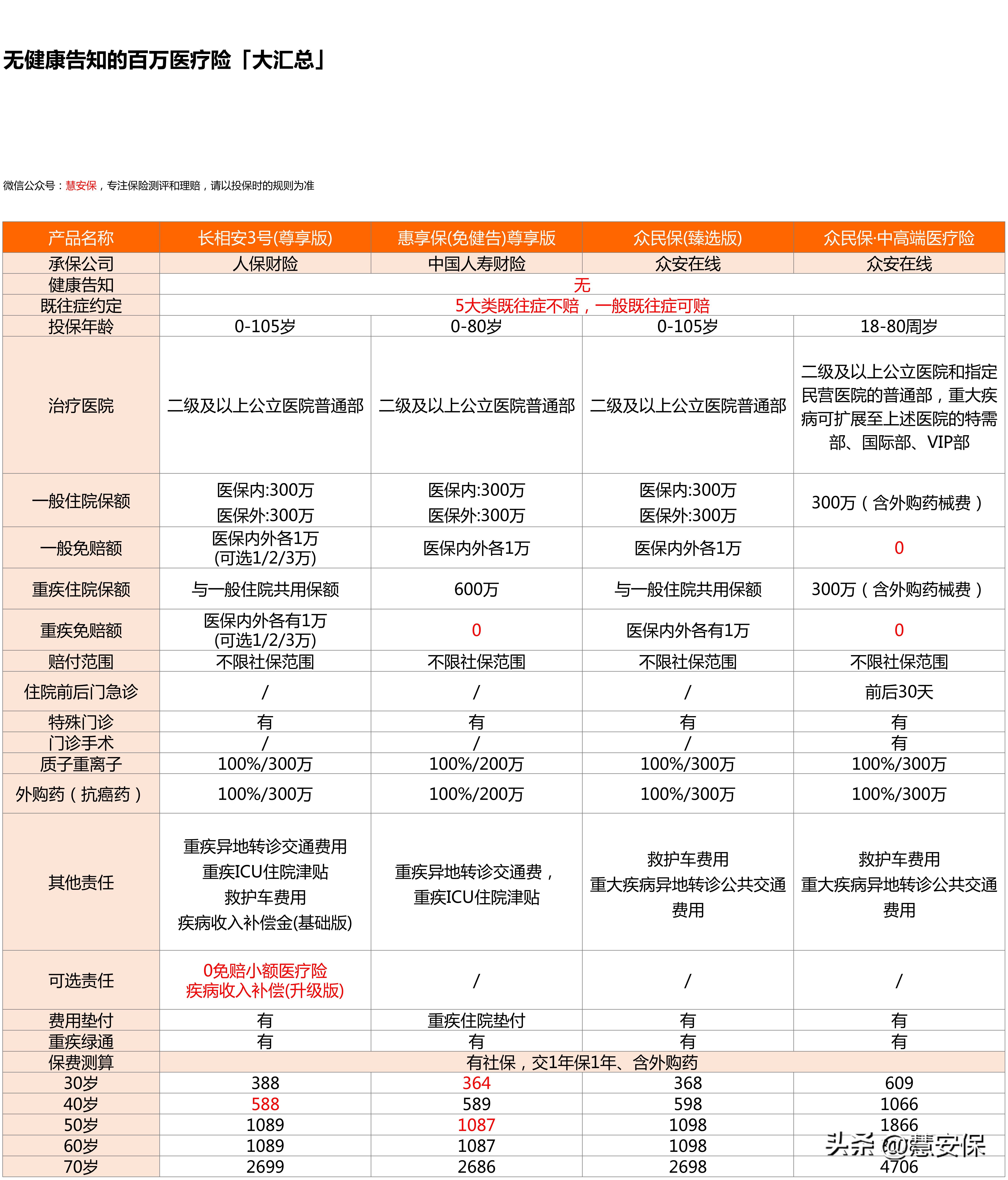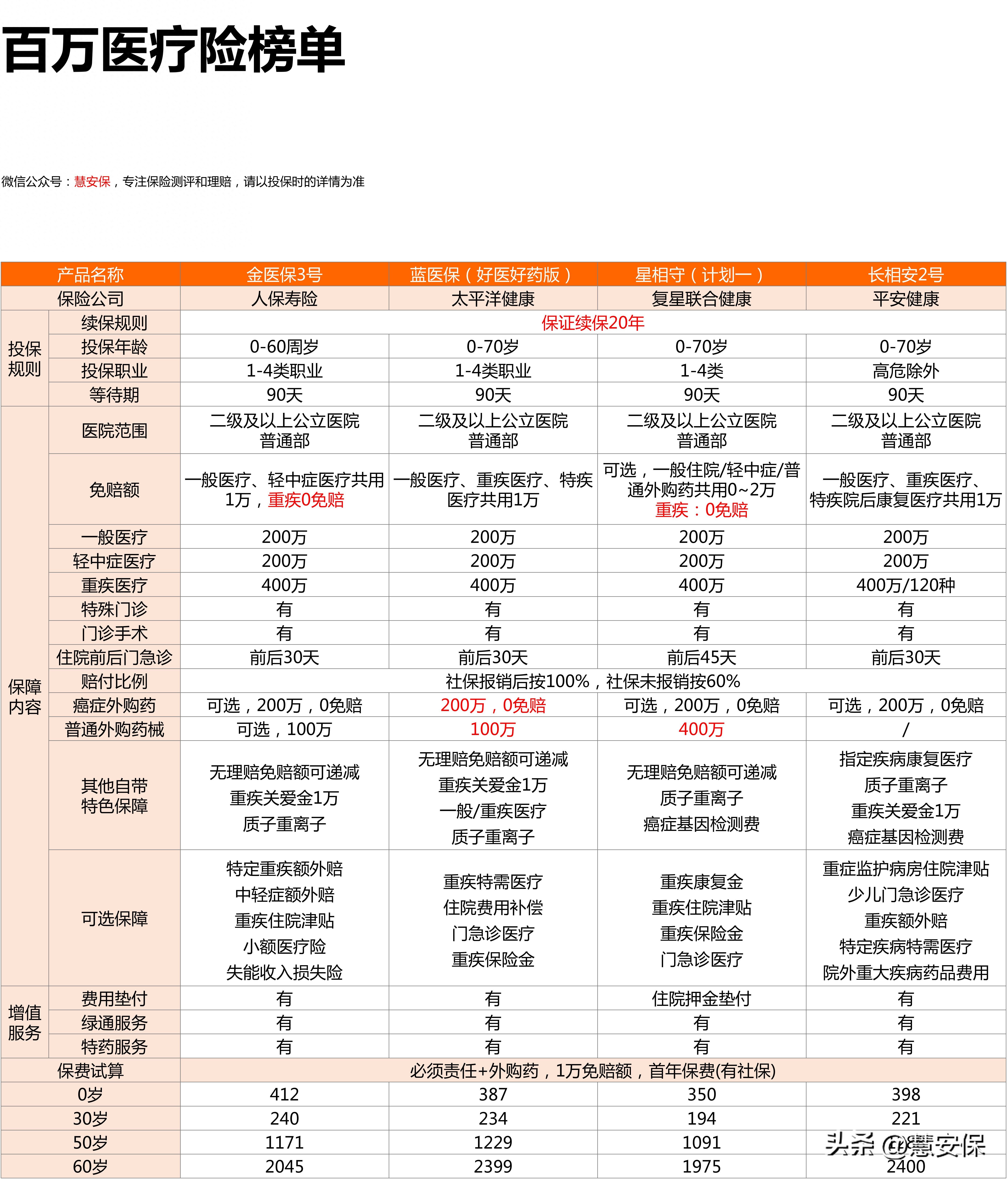 以上几款都是保证20年续保和理赔的,都目前市面上热销的,这几款如何选?分享给大家。