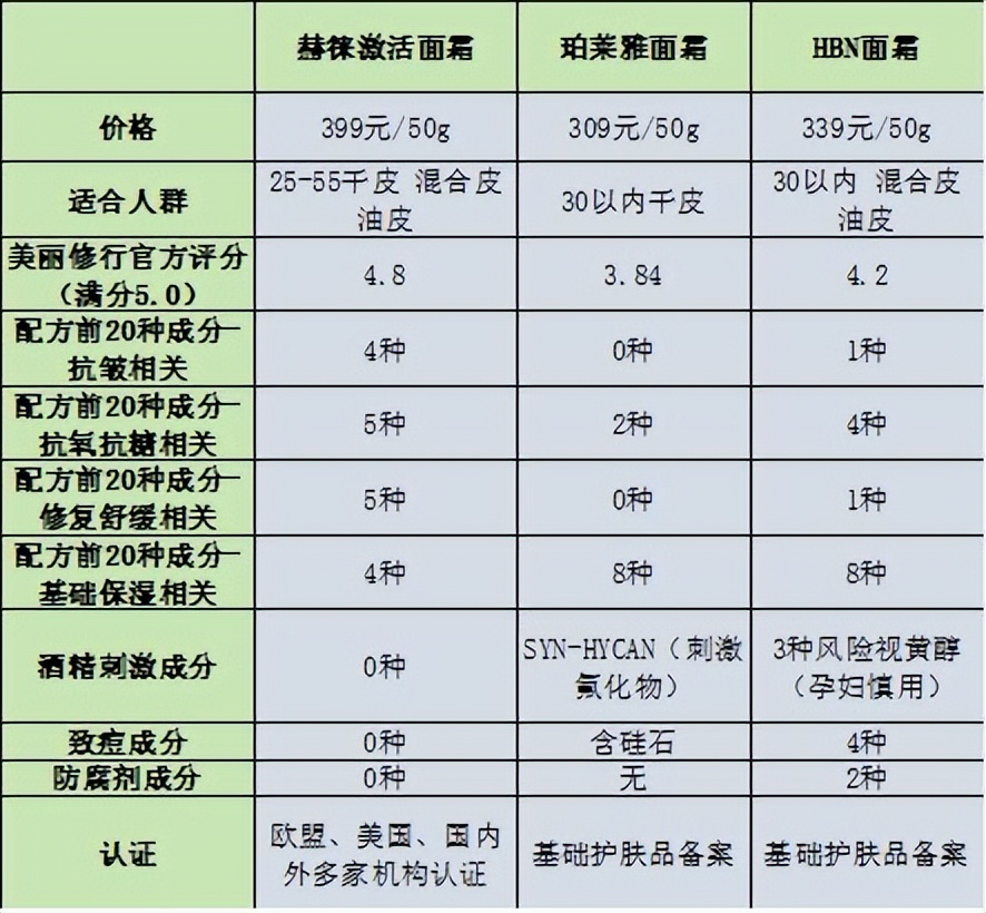 我总结对比了赫徕和用过的几款抗老面霜的成分对比,大家可以看完就懂了: