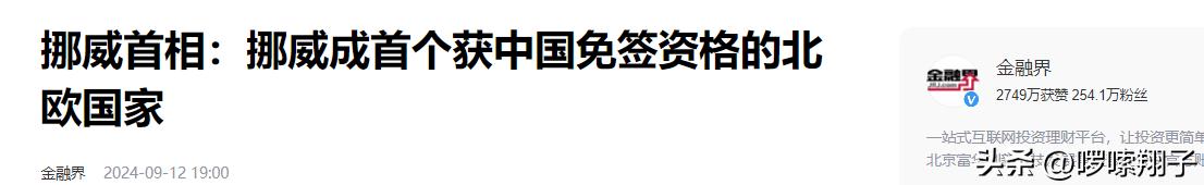 【2】挪威首相:挪威成首个获中国免签资格的北欧国家 金融界 2024-09-12