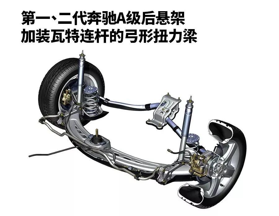 大部分人买车并不会买顶配,因此你买到的奔驰A级基本上都是扭力梁后悬。其实奔驰A用扭力梁是有历史的,前两代的后悬都是扭力梁结构,但加装了瓦特连杆,相对比一般的扭力梁要好很多。而且最开始的A级定位于小型家用“面包车”,与如今截然不同。