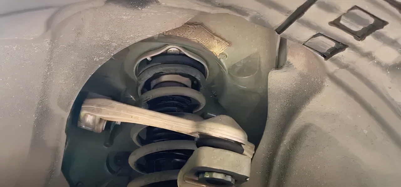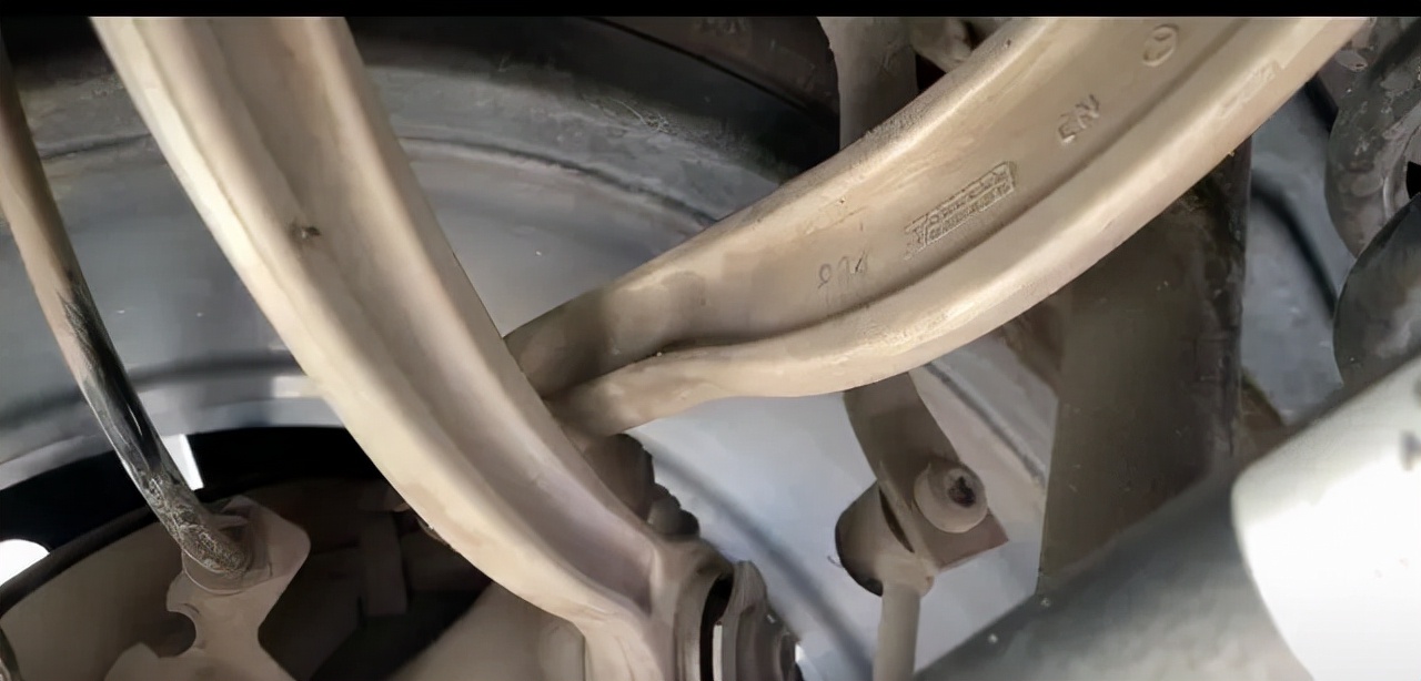 这台奔驰E级的副车架是铝合金材质,并且是全框式结构。相对来说,全框结构的副车架,可以让车身的刚性和韧性变得更强,整车更加紧实,不松散。而铝合金材质的副车架,减重明显,并且弹性好,吸收震动能力强。