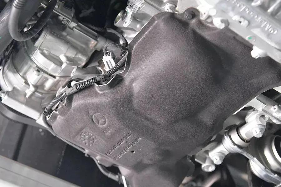 除了发动机下护板之外,发动机油底壳还加上了一层发泡保护层。