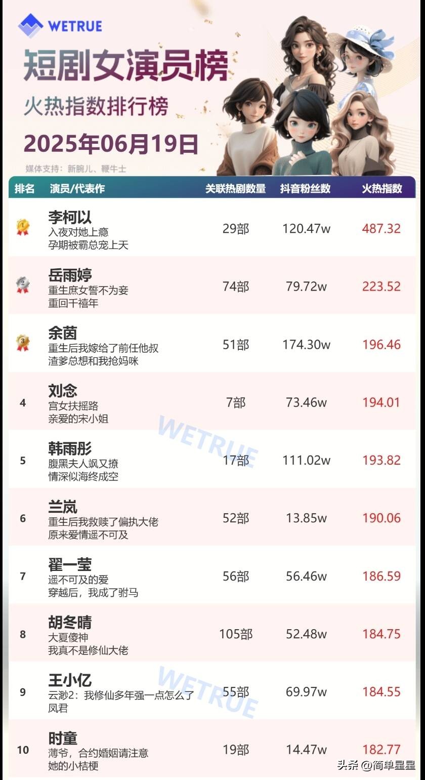 短剧圈最新热度女演员排行榜,都有谁呢?