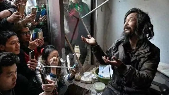 因热爱读书、出口成章,沈巍被称为“流浪大师”,举着手机的人们蜂拥而至,他成了抖音和快手上的“顶流”,备受追捧,也备受打扰。