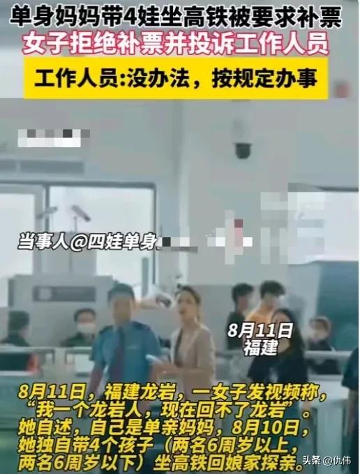 8月12日,一单亲妈妈带4娃坐高铁拒补票事件冲上了热搜。