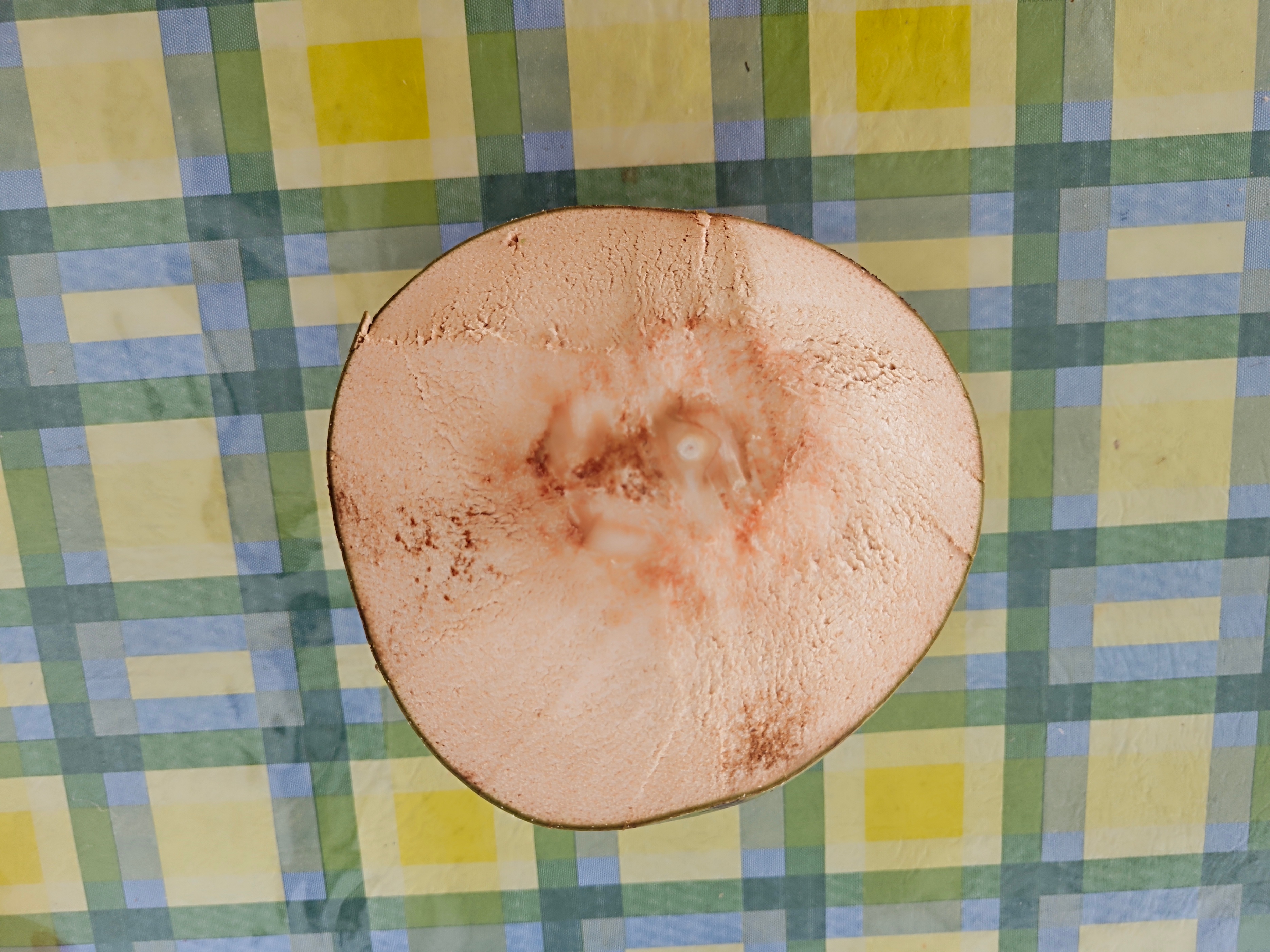 把外果皮和中果皮全去除后,就是小了一大圈的硬硬的内果皮包裹着的种子了。这时它的直径约是12厘米。