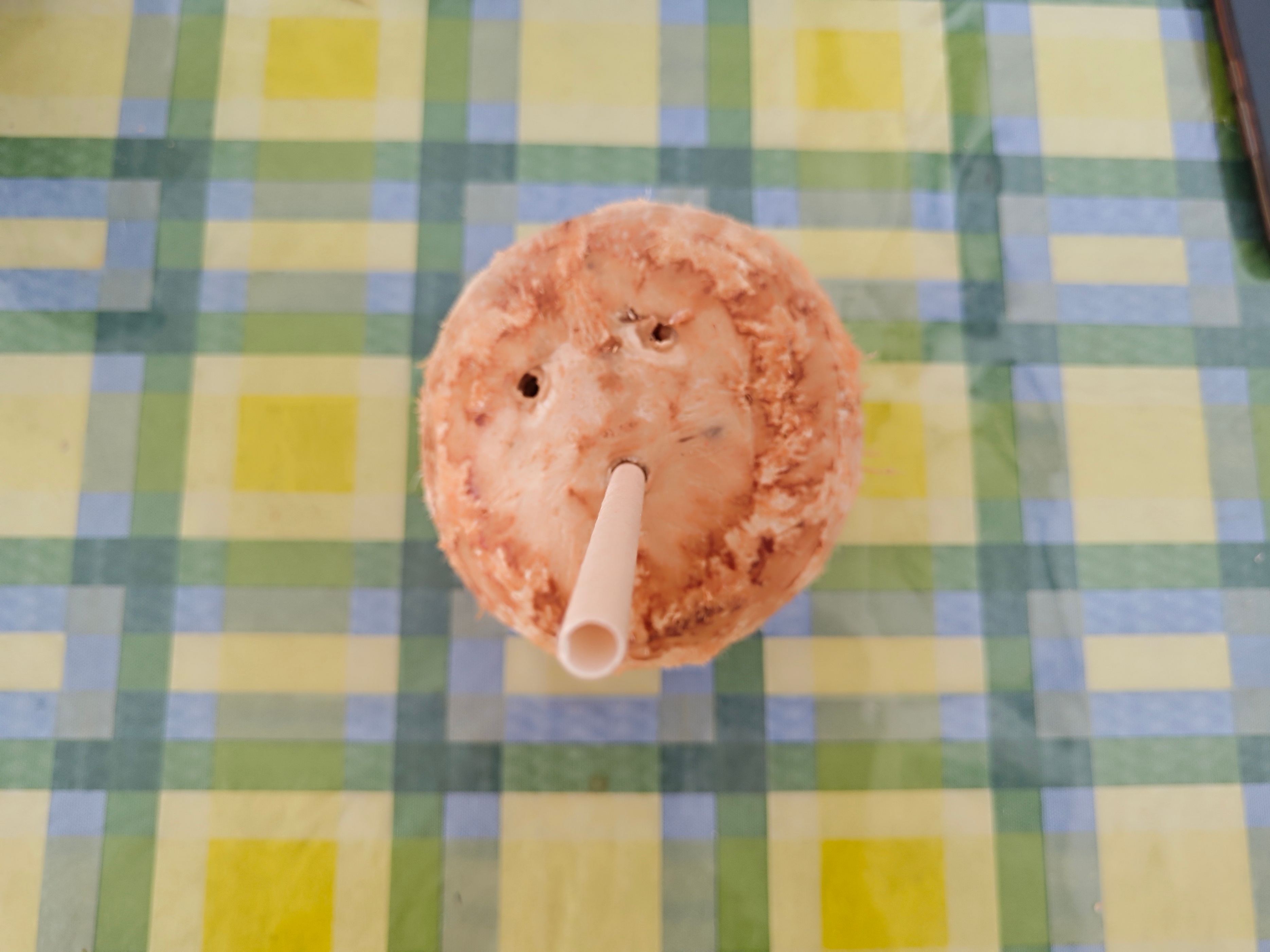 看到这里,我想问一句:打通3个孔后椰子看起来像什么?像不像幽灵?像不像鬼脸?反正我是越看心里越是发毛。