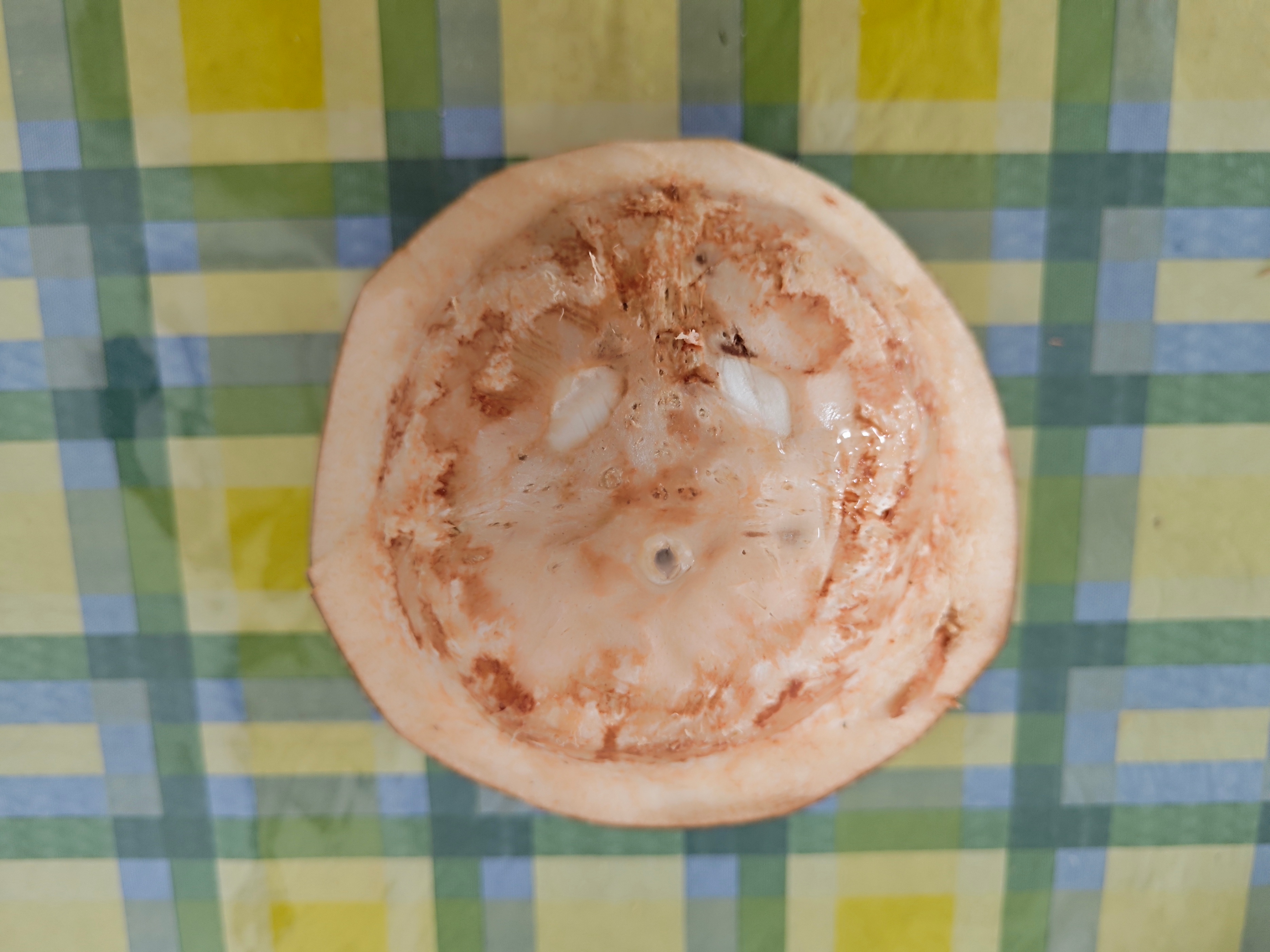 那椰肉是什么?是胚乳!确切的说是固体胚乳。之所以这么说,是因为里面空腔里还有大量的已被我们喝掉的椰子水,而这些水并不是为了给我们做饮料而准备的,而是也是为了种子萌发提供养分和水分的,它们应该叫做“液体胚乳”!这种情况我还是第一次看到。