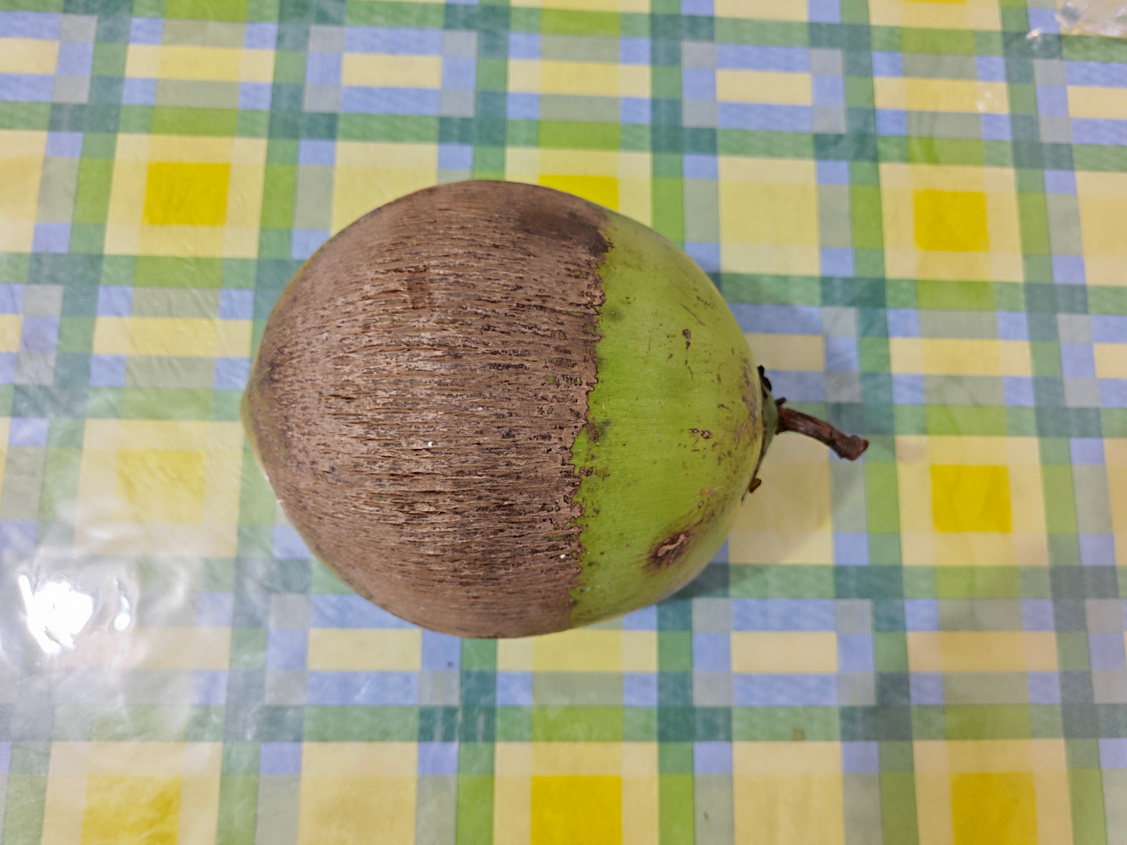 从外形看,椰子呈卵球状或近球形,顶端微微有三棱。这个椰子直径约21厘米。