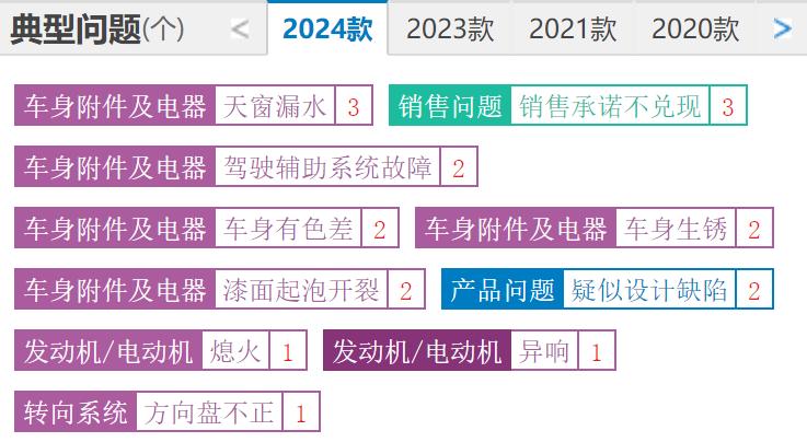 在 2024 年此车主要投诉故障也并不多,主要有: