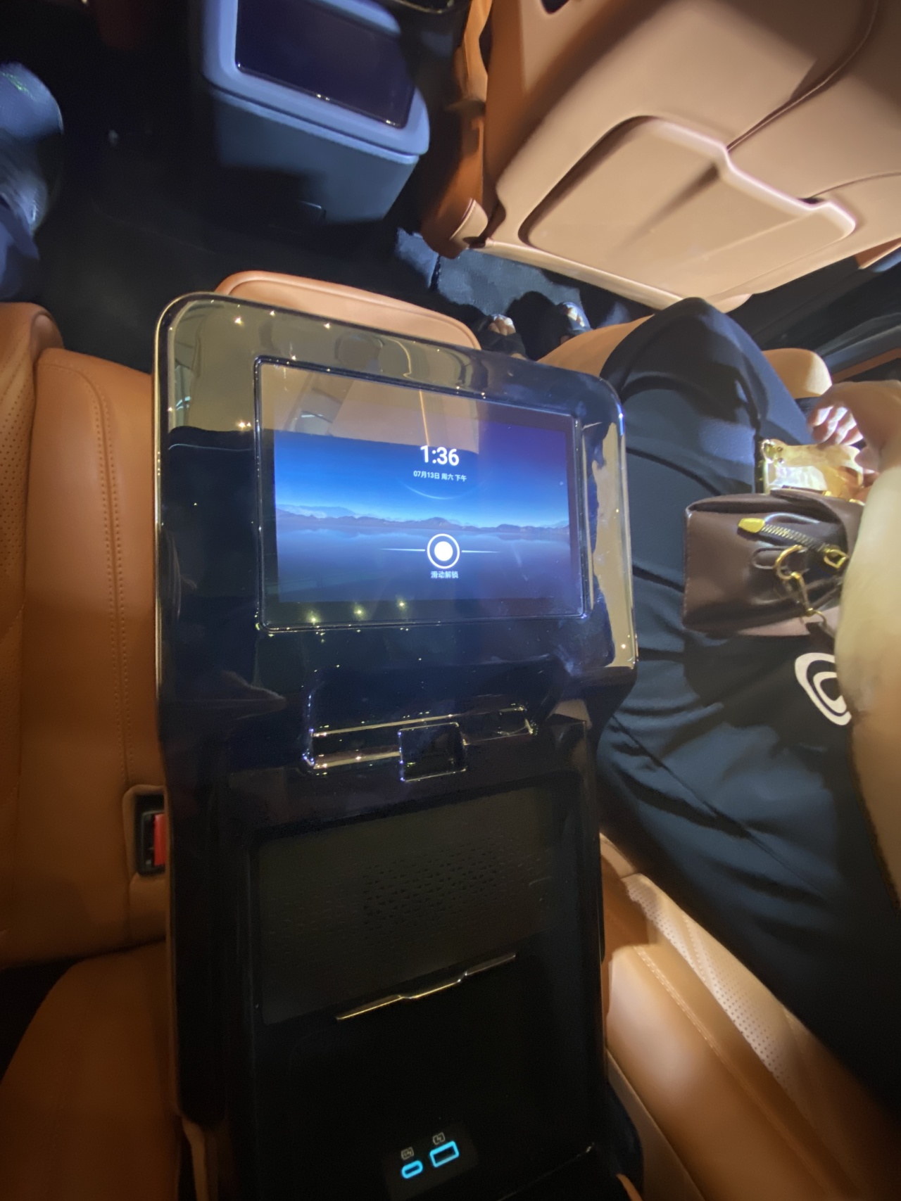 这种档次的汽车,在后排当然要使用全尺寸的大扶手,虽然这个扶手带有无线充电、储物盒、大屏、翻折头枕等功能,档次已经足够了,但是我觉得在外形上还有提升空间。仰望U8使用了大量的黑色高光塑料件来进行装饰,与面料的纹理不太搭配,高光件在使用时容易留下指纹印记显得不清爽。此外整个扶手和单个扶手盖板的厚度偏厚。