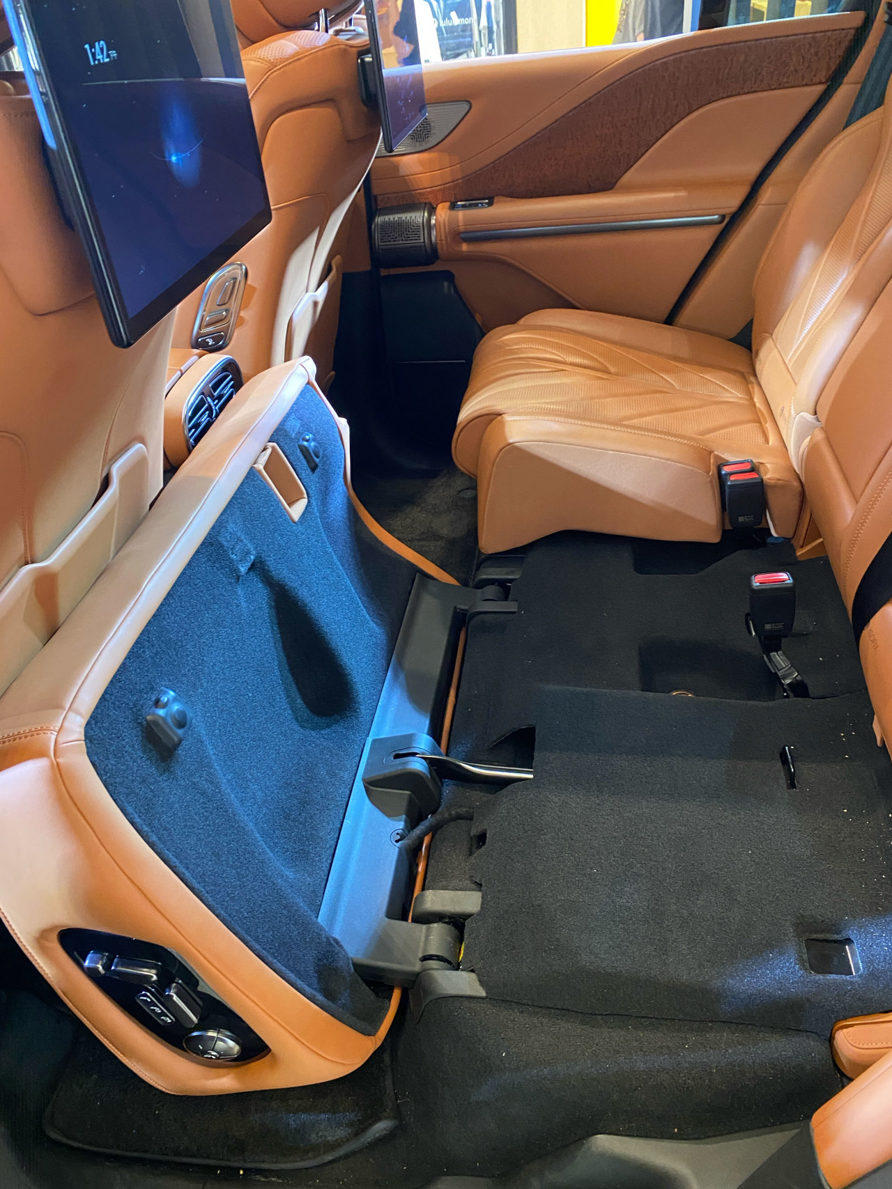 从这里也可以看出,因为悬挂了这块屏幕,仰望U8的前排靠背也不能向后倒得更多来与后排接平形成前后排的大床。