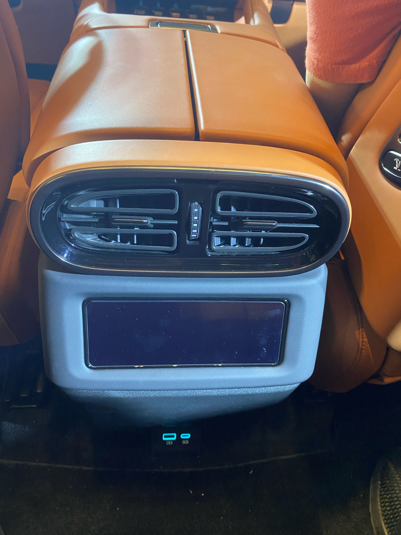 Console后端这个出风口造型更像是比亚迪汉仪表板出风口造型的变种,和前排出风口不一样。一般来说,前后出风口造型在面积允许的情况下,会尽可能设计得风格一致。