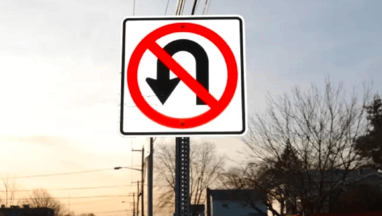 也许有的地方只有交通标志,有的地方只有交通信号灯,或者有的地方两者皆有。但是不用担心,因为在通常情况下,只要没有禁止掉头的标志,就是可以掉头的,不过要记住,一定要越过斑马线再掉头。