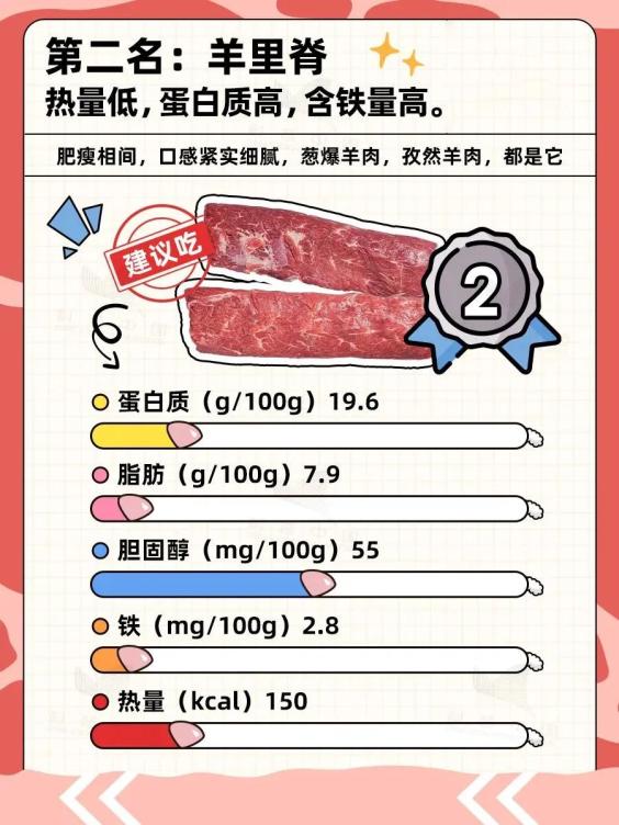 ✨按照“营养高,口感好”的标准,建议吃这4个部位:羊上脑、羊里脊、羊颈肉、羊胸肉。