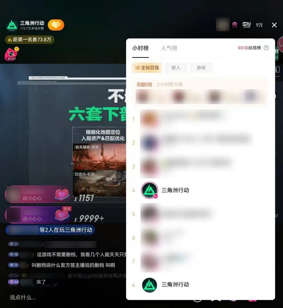 11月17日,官方公布了第二赛季,即“聚变”赛季的前瞻直播,仅在抖音上就取得了人气全站第四、游戏榜第一。这两天里,《三角洲行动》相关的话题也屡屡占据热搜榜。