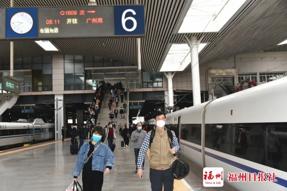 4月10日8时11分,开往深圳方向的G1609次满载七百多名旅客从福州站始发开出。该趟列车终到广州南站,经停深圳北站。