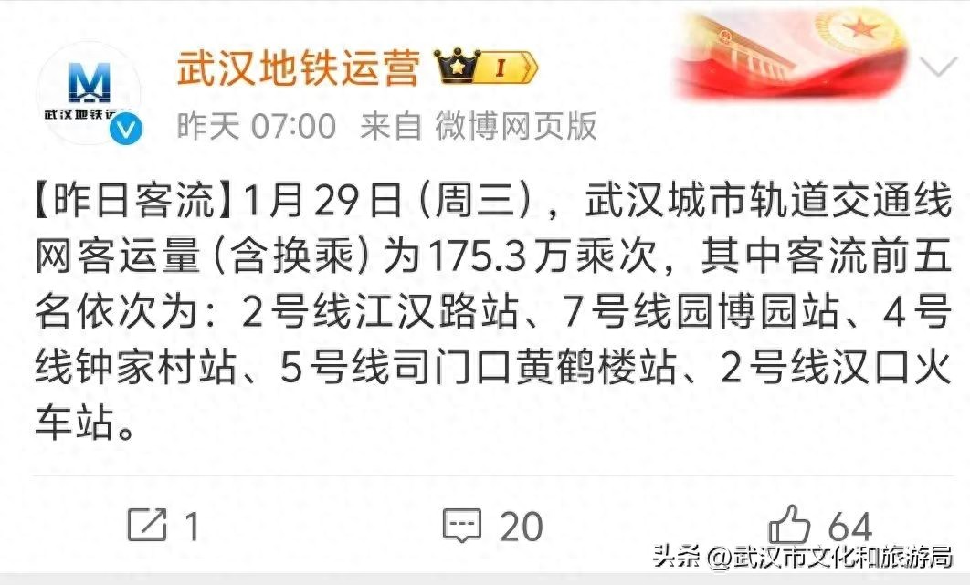 最近,武汉地铁7号线园博园站有点火。除了春节站点连续荣登武汉地铁线网客流第二名之外,还有地铁站出站口A2和B2之间隔条“长江”的“奇观”,引发不少游客前去打卡。
