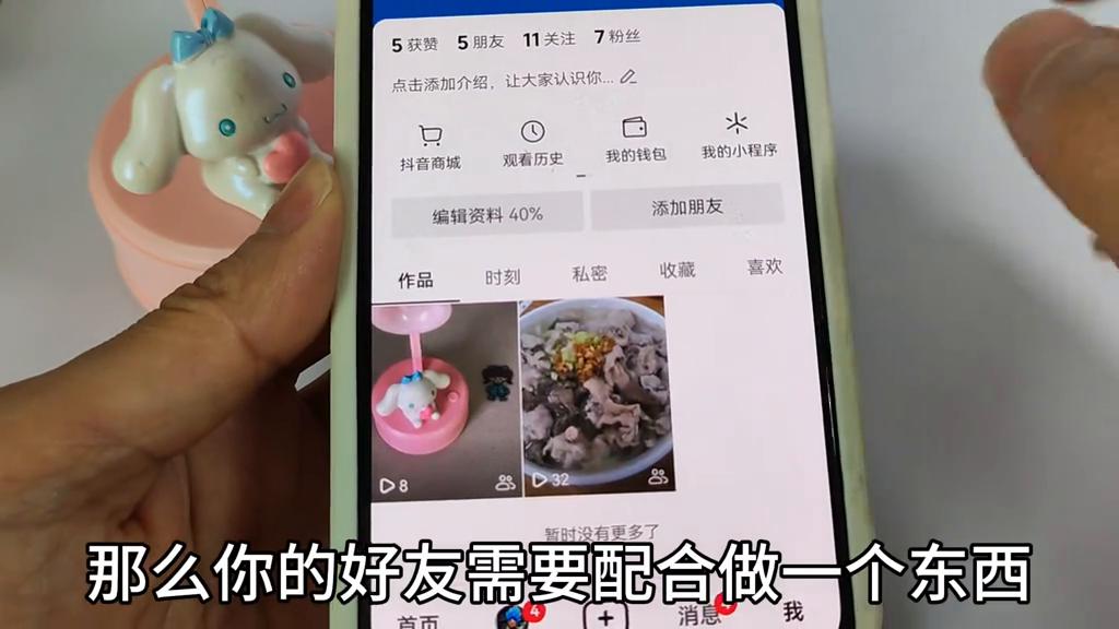 如果你不想拉黑他又想让这个在里面单独消失,需要对方做一个配合,你的好友需要配合做一个东西,就是他点击你的头像,然后拉黑你或设置不让他看作品。设置完成后回到这里,看到这个记录还在,因为有缓存的问题,需要退出来再点击进去。进来之后你就发现刚才好友的视频就不见了,他设置的不让我看也会在这里消失。