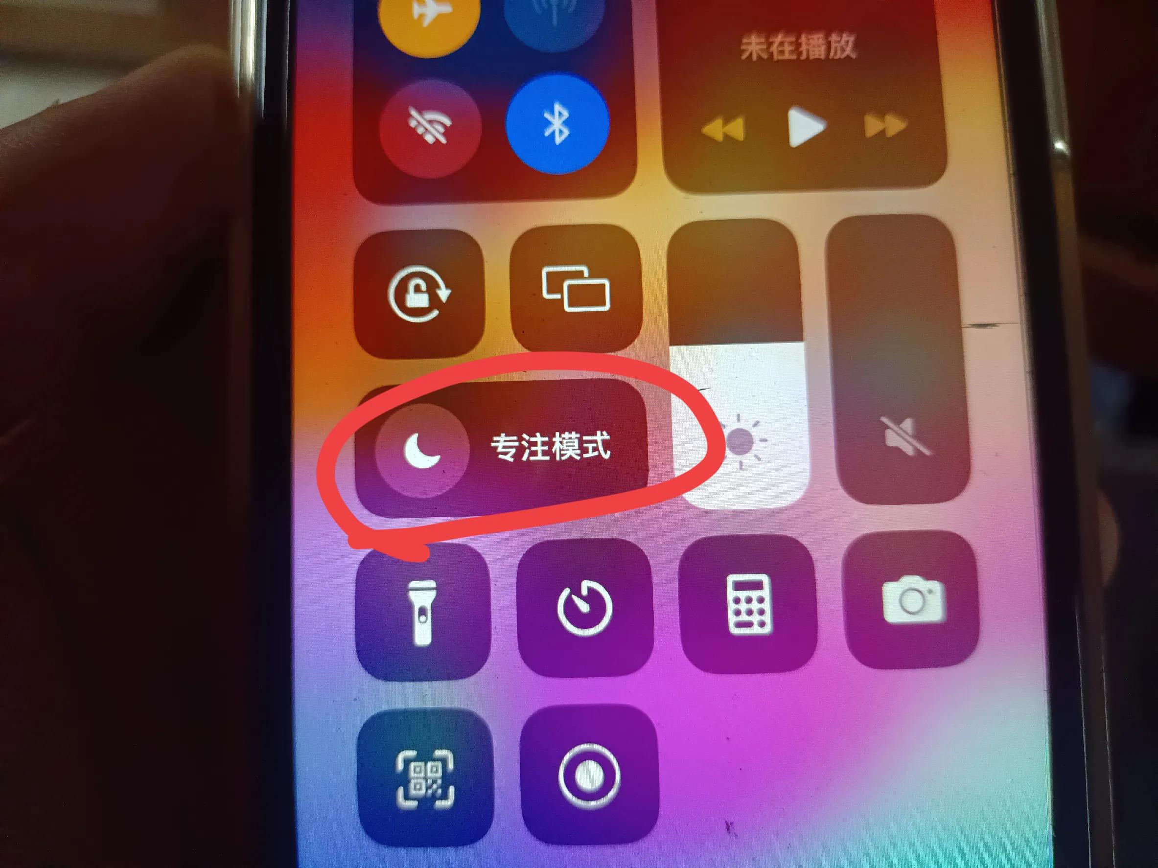 其次要看一下有没有打开专注模式,有的话记得关闭。按住手机左上角下滑,找到专注模式,选择关闭勿扰模式即可。(如上图所示)
