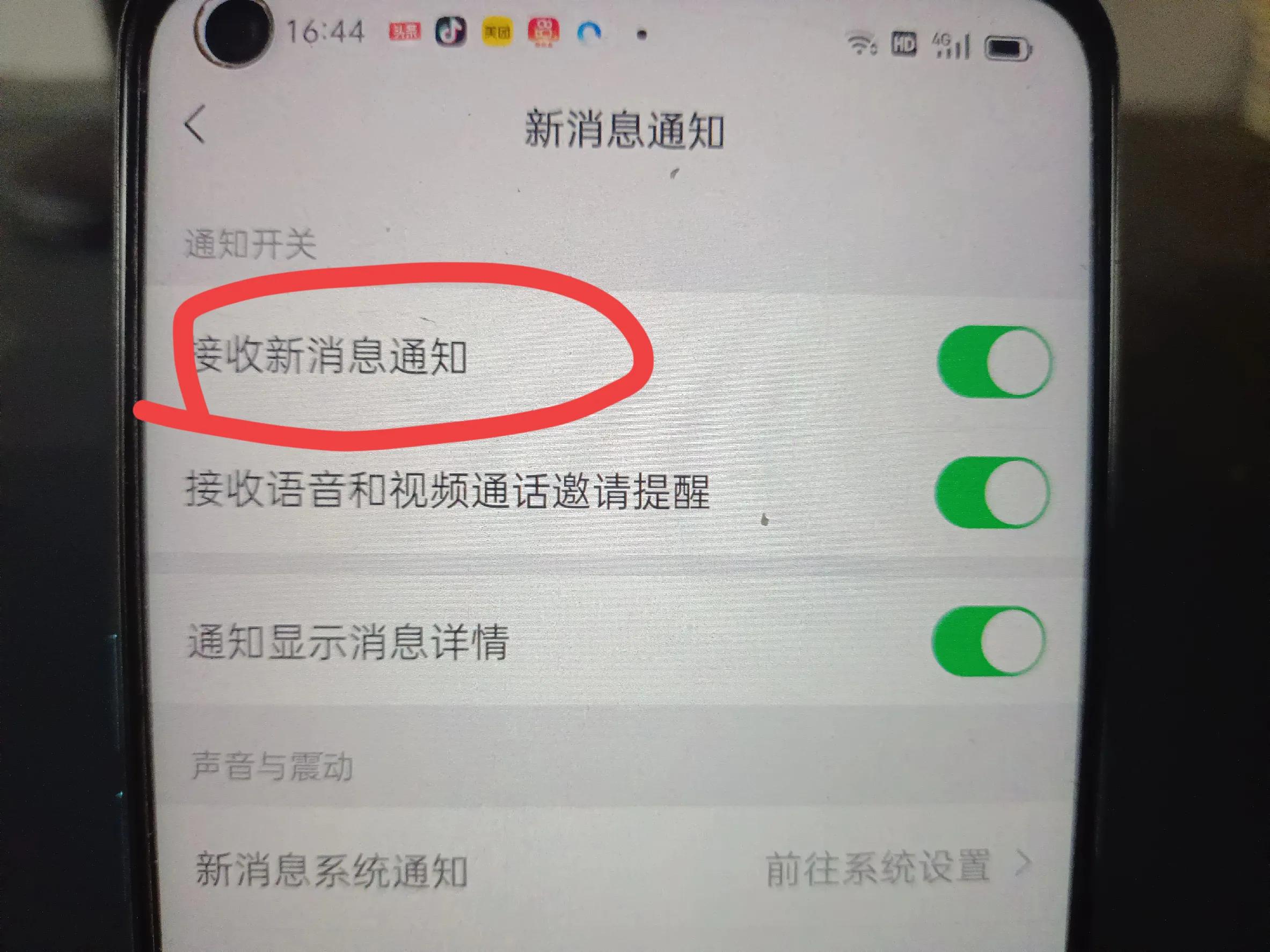 接收新消息通知一定要打开,否则手机将不再接收系统通知。(如上图所示)