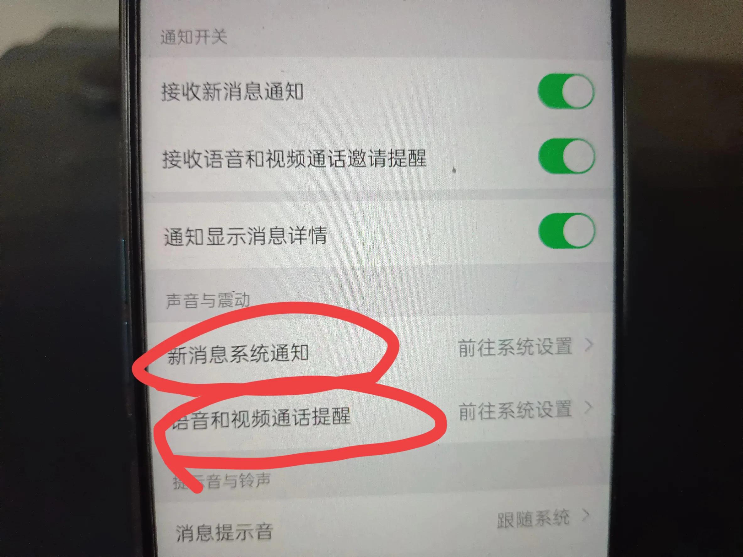 接着选择新消息系统通知,一定要勾选允许通知,提醒方式要勾选桌面图标角标、悬浮通知、锁屏通知,语音和视频通话提醒的设置方法也是如此。(如上图所示)