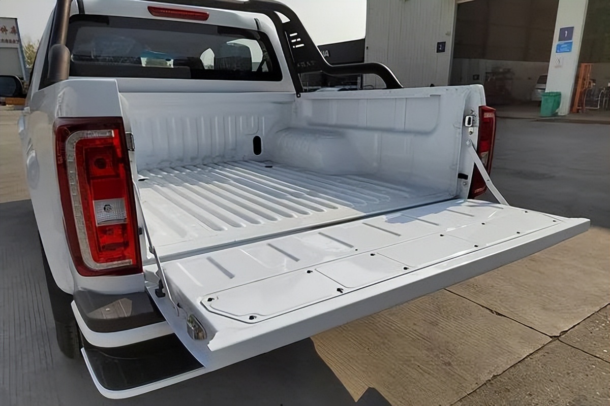 实拍的车型配备了265mm宽18寸AT胎,这一系列的轮胎可以很好地兼顾城市道路和非铺装路面的轻度越野,既能拉货又能越野,挣钱享受两不误。