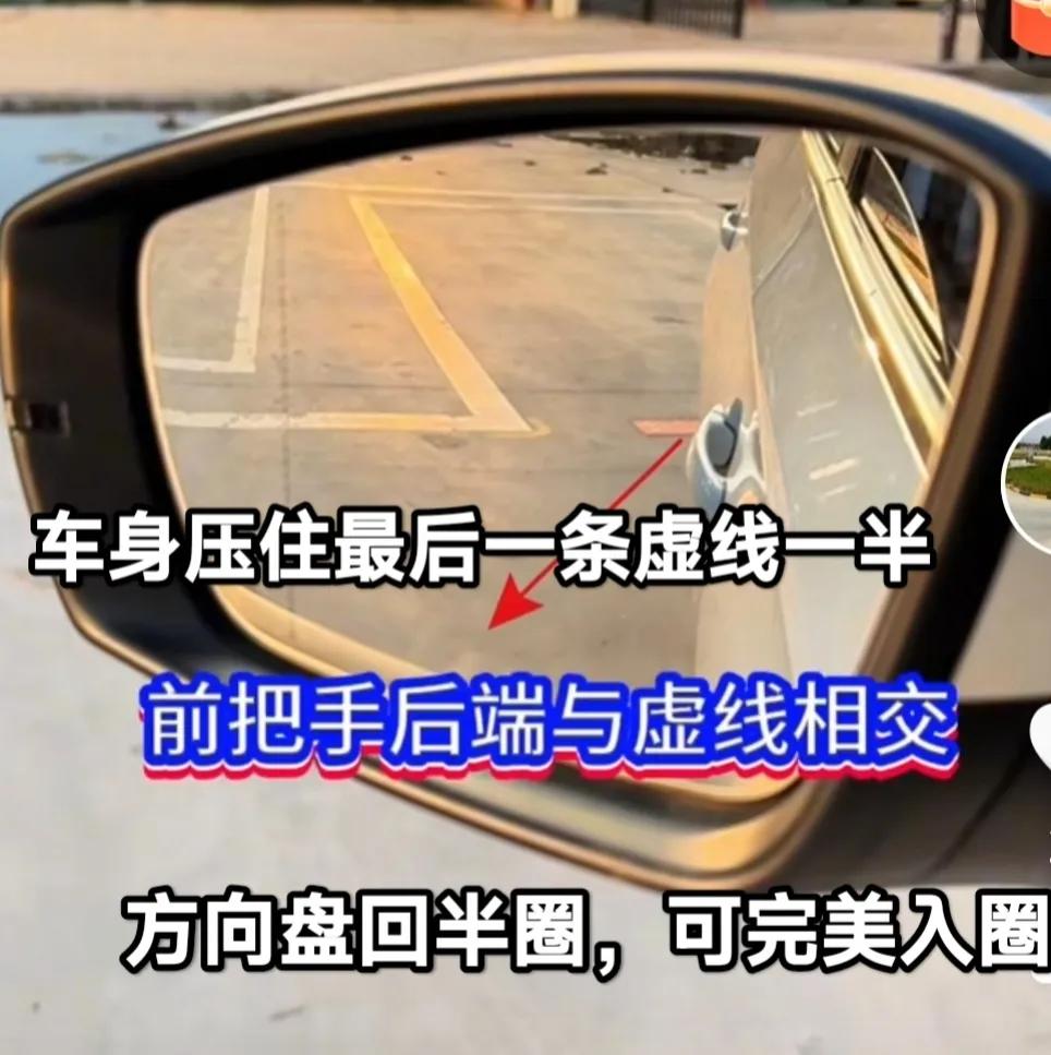 3.车身压住最后一根虚线(30公分)时,回正点位: