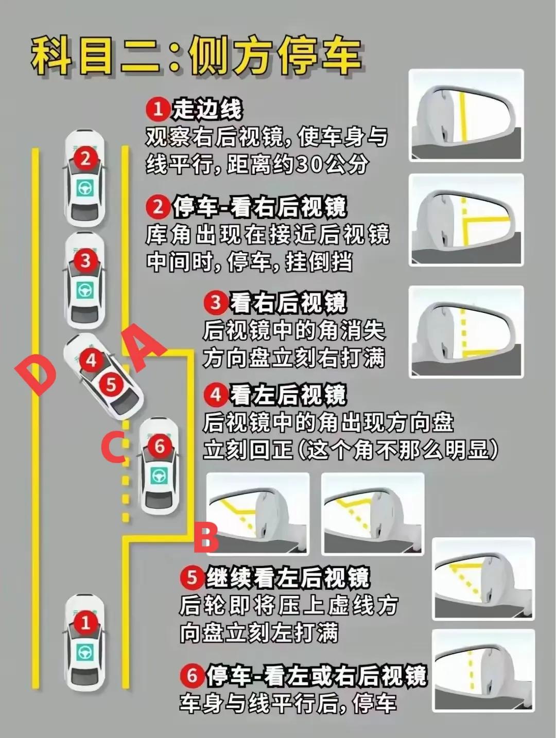 1.关键看ABC三个点位,一定要匀速,慢行,打方向盘要快而坚决。(A消失右打死,见B回正,即将压C左打死)。
