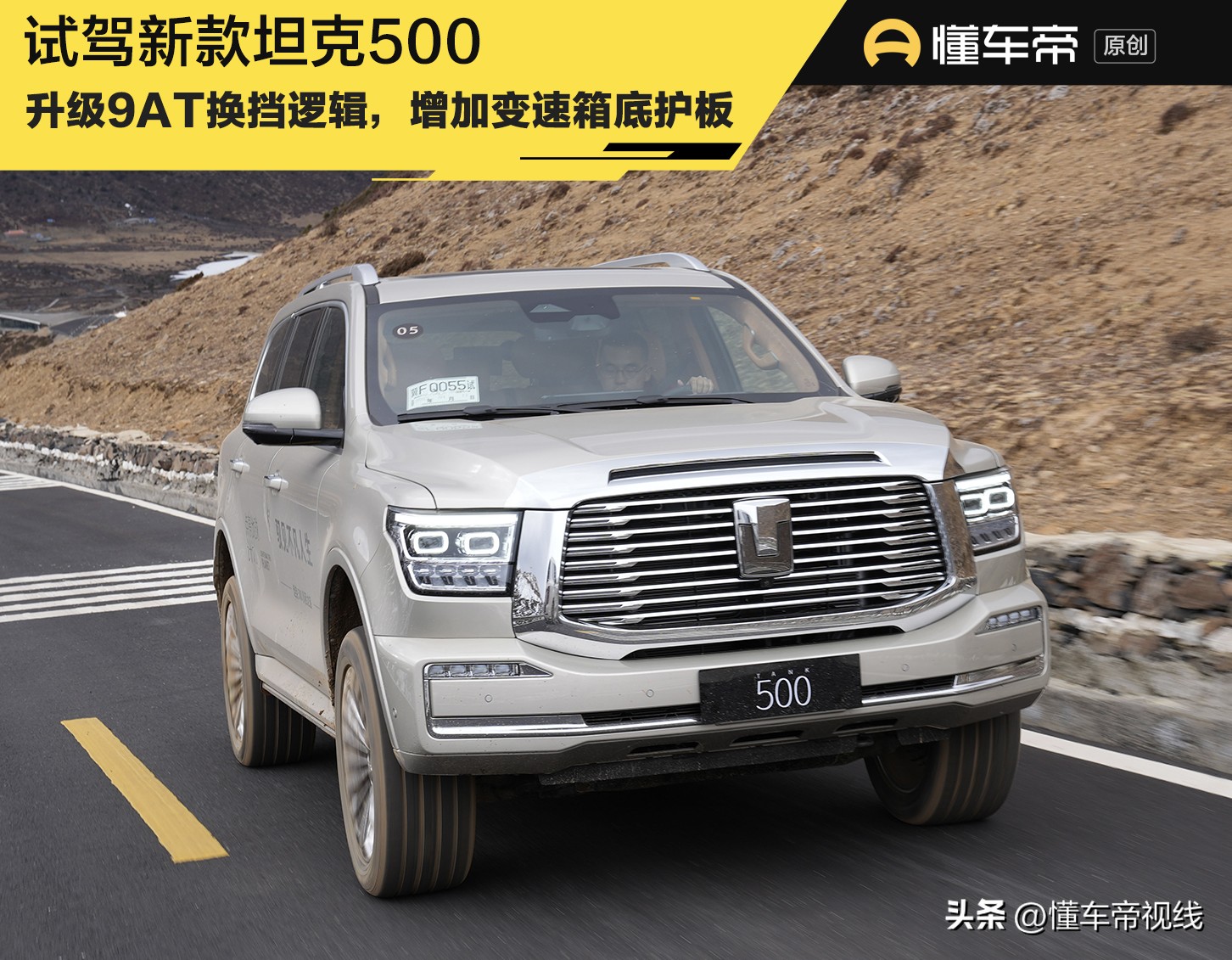 [懂车帝原创 产品] 新款坦克500已经正式上市,指导价区间33.5万-39.5万元,与老款车型保持一致。坦克官方表示,新款坦克500的9挡自动变速箱换挡逻辑、滤震能力均进行了升级,同时还配备了原厂变速箱底护板和前/后排座椅靠背通风功能。日前,懂车帝抢先试驾到了新款坦克500,究竟它的实际表现怎么样?请继续往下看。