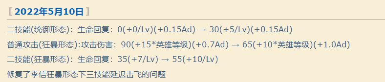 在2022年5月,暗信的2技能回血得到了大幅加强,狂暴形态也变得更加依赖Ad加成,而那个版本,闪电匕首刚刚改版,普攻稳定附带高额法伤,“闪电流李信”直接原地起飞,成为了当之无愧的版本之子。