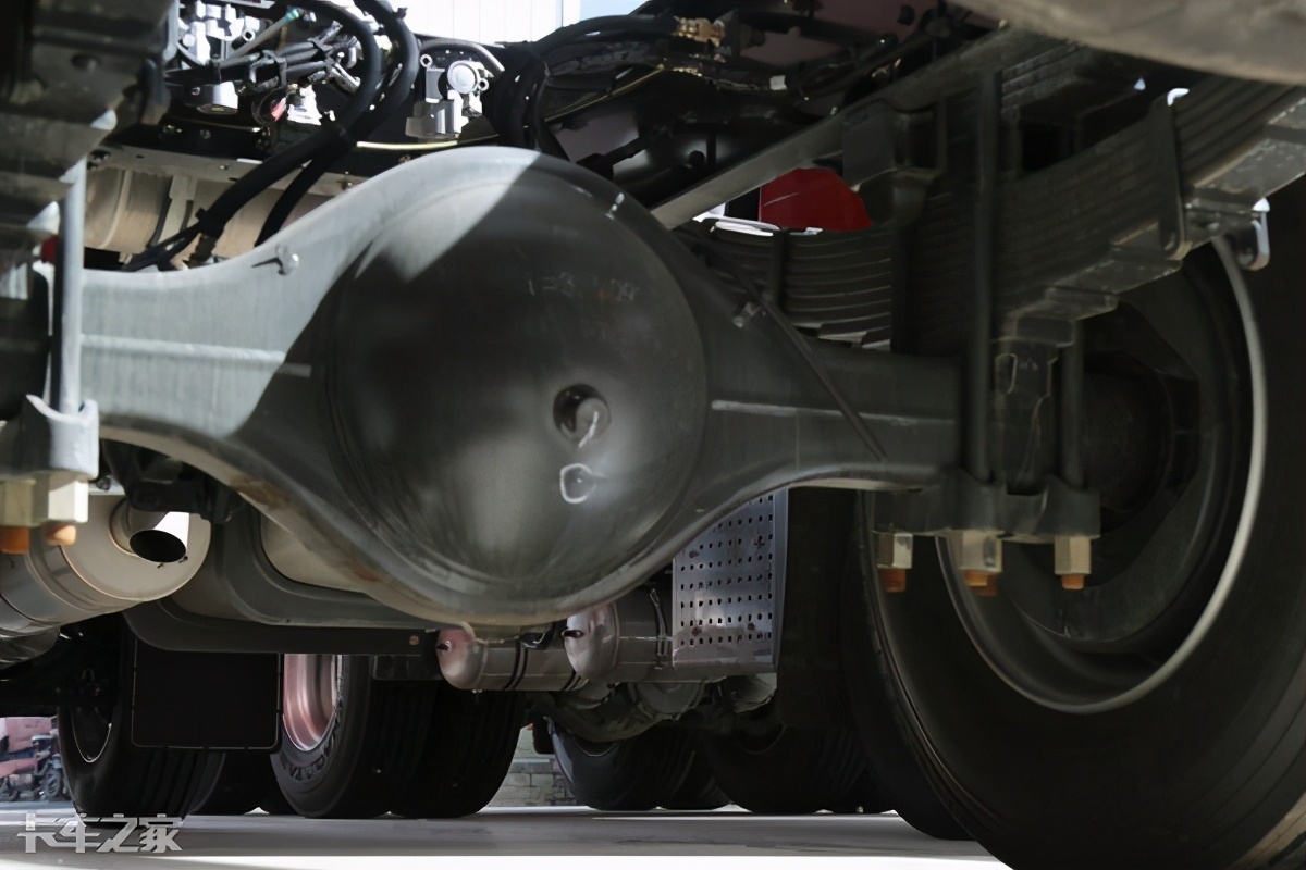 在底盘方面,乘龙H5同样是非常厚道,前后均为板簧悬挂,前11后12+9的片数设定,搭配上前3.6T后9T的车桥,让乘龙H5在承载力方面表现不俗。而在底盘线束的捆绑以及包覆材质方面,乘龙H5也有着大厂该有的工艺和品控。