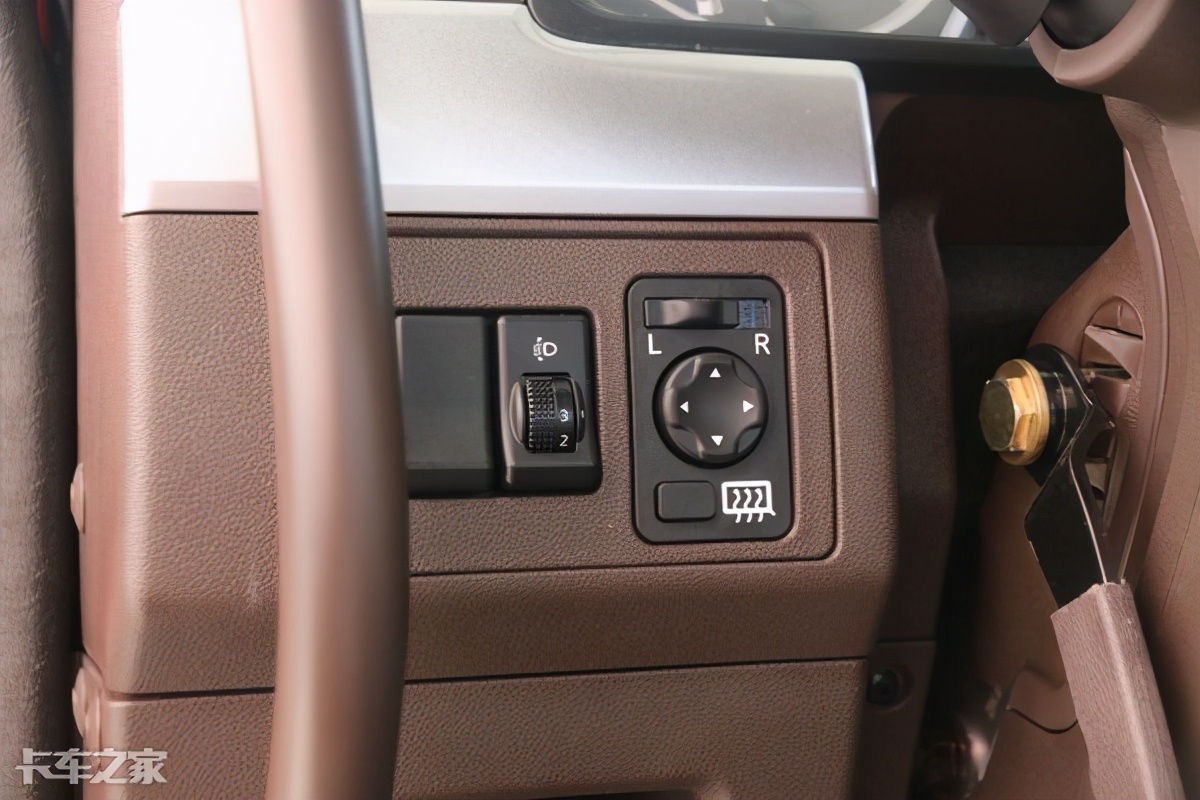 大灯的高度调节以及电调后视镜、后视镜加热均布置在方向盘左侧,这些原本在牵引车上的配置,也能在乘龙H5上体验到了。方向盘为手动调节机构,仅支持上下调节,如果能加入前后的调节,能让卡友找到更舒适的驾驶坐姿。