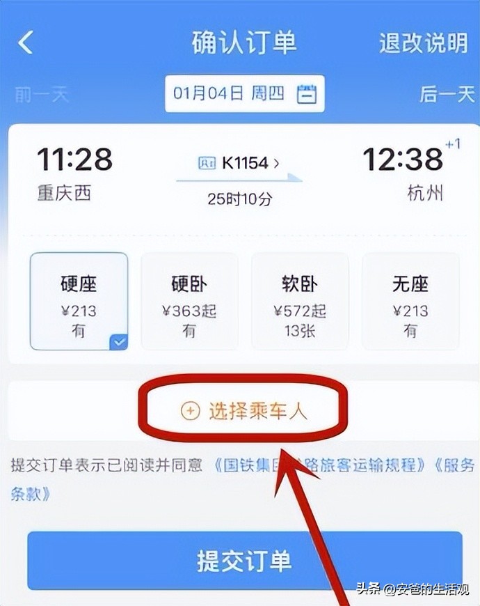 选择你心仪的班次,再选择硬卧或硬座,最后点击预订。在弹出的页面中,选择乘车人。