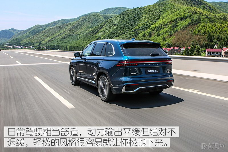 而实际上,星越L是一台能让你即刻进入到放松状态,开起来非常松弛的一款车,无论油门踏板还是转向,有关乎驾驶的部分都是典型的家用化调校,力度非常轻,反馈力很小,很有日系车的风格,驾驶氛围营造的相当舒适,舒服到你根本不想把它往快了开。