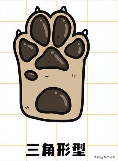 肉垫特征:有3颗差不多的掌球,整体来看像个小饭团,底边基本平行。