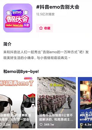 近日,某短视频平台活动“emo告别大会”如火如荼的举行着,人民网、湖南武警、江西消防等诸多官方账号都录制相关短视频鼓励大家走出emo。在此之前“emo文学”作为兴起的网络用语,它的背后不只是一场互联网文字游戏的狂欢,也是年轻人某种情绪的聚合和一些压力的释放。