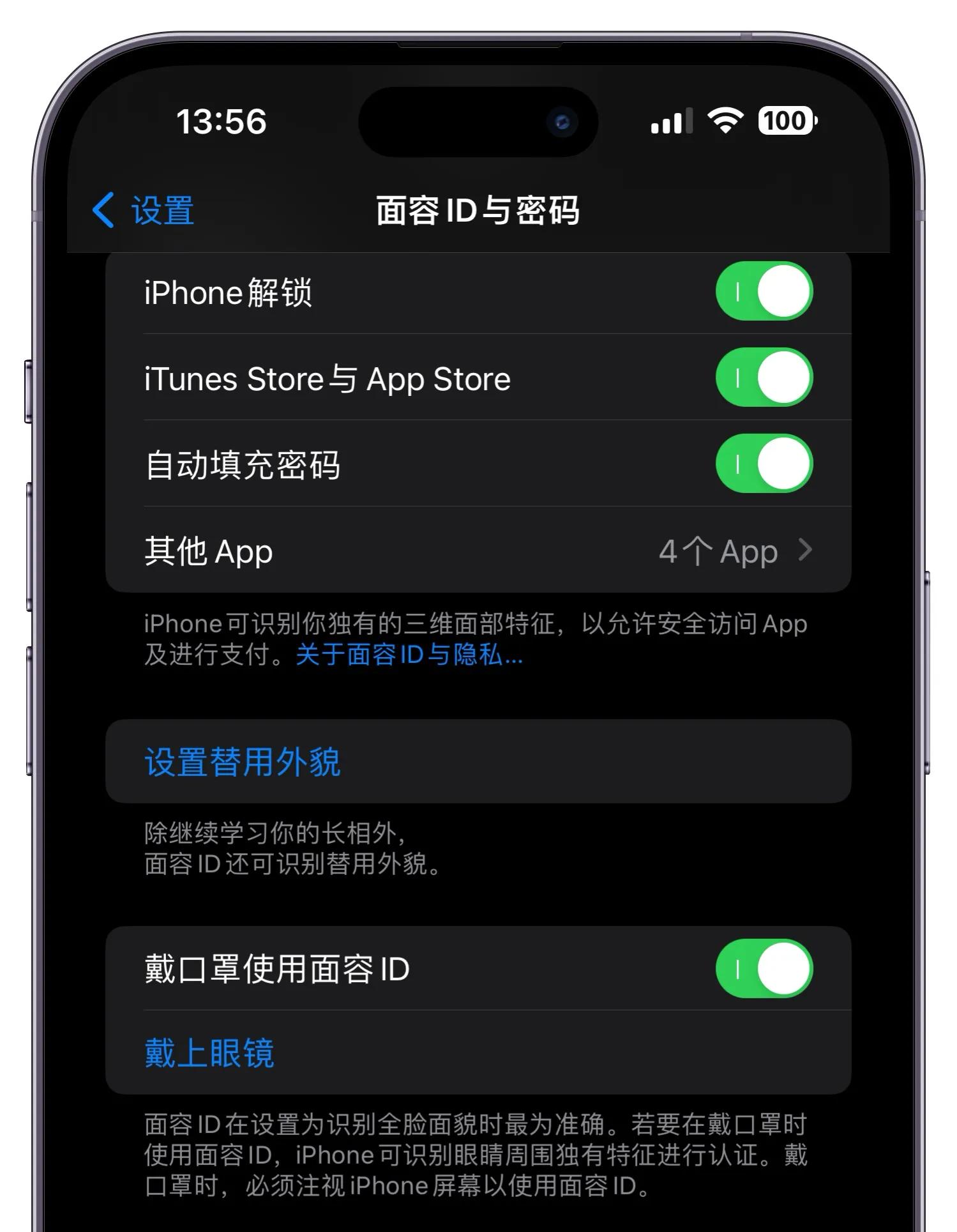4、戴口罩使用面容ID