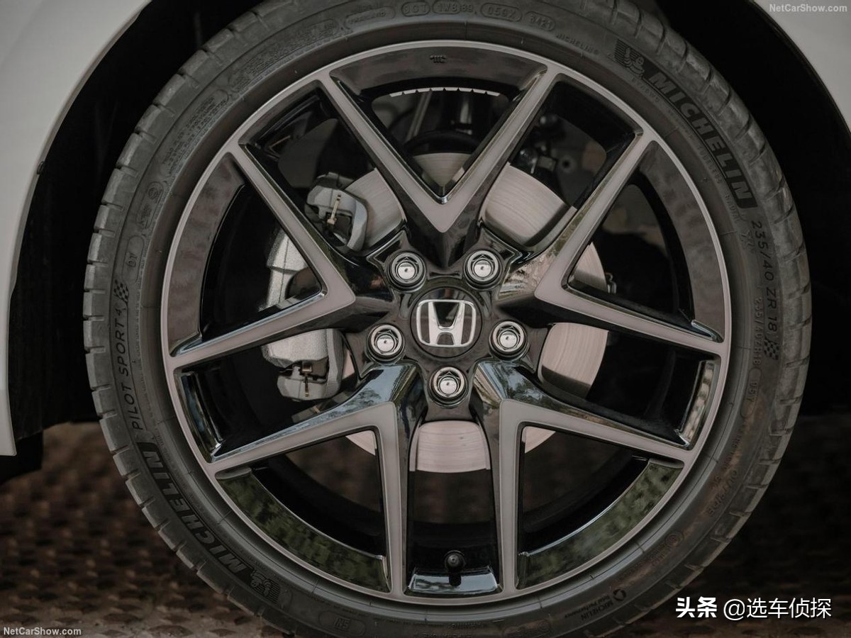 为了增加操控精准度,思域混动版首先悬挂完全不同,使用轻质和高刚性的铝制前副车架,修改前减震器摩擦系数,相比上一代轴距加长 35 毫米,后轮距加宽 18 毫米,提高了转弯稳定性。通过减少阻尼器安装轴承和球形接头之间的摩擦,消除了转向输入延迟,转向摩擦减少28%,也就是更接近“指哪打哪”。